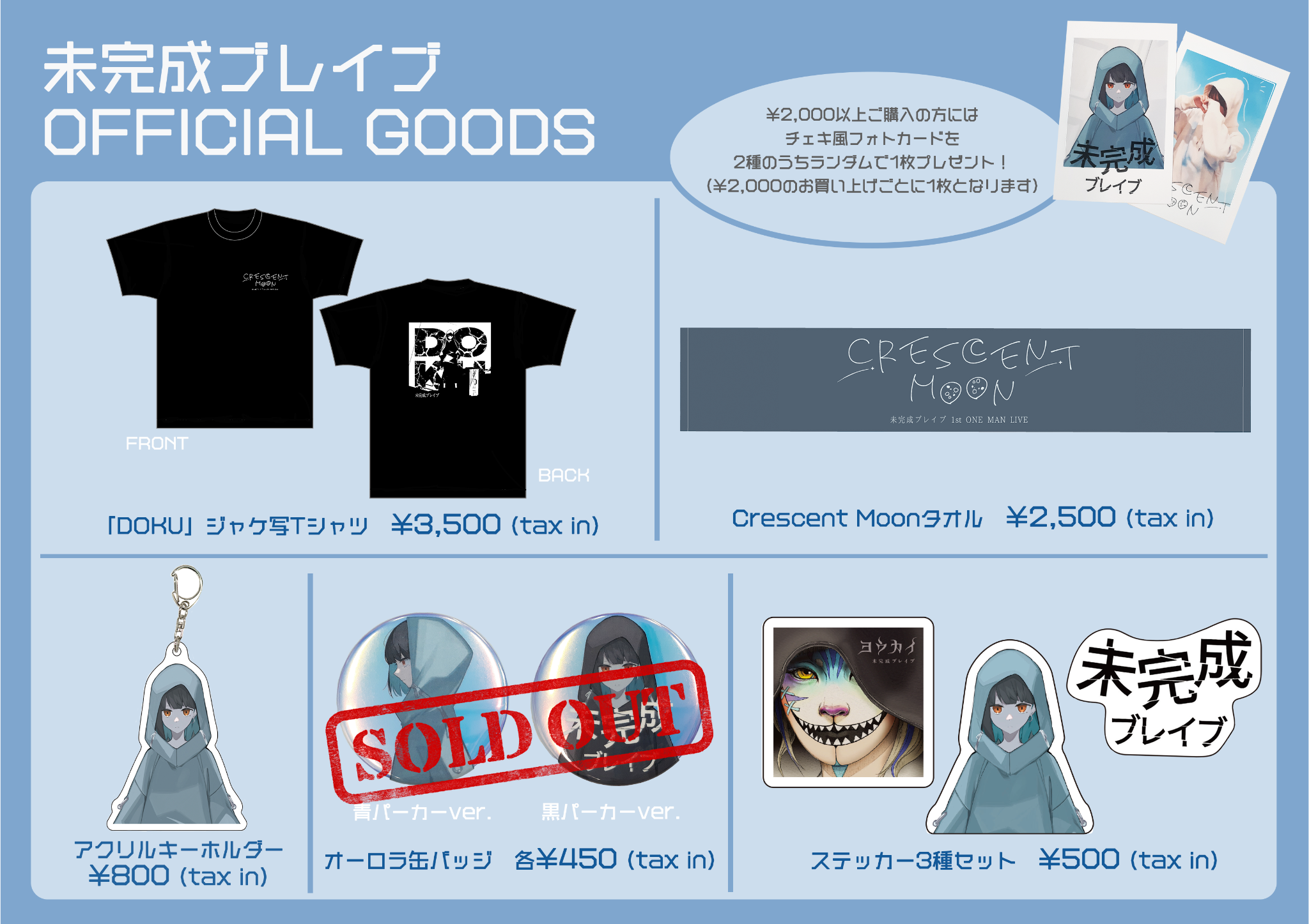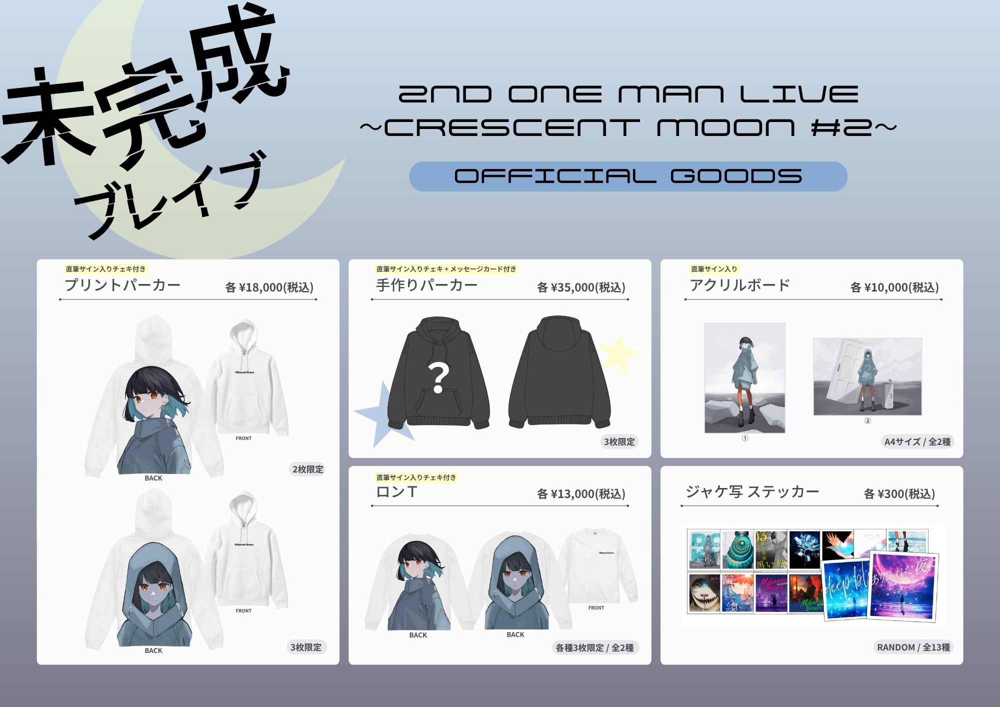 2025年10月25日(土)に原宿RUIDOで開催される「未完成ブレイブ 2nd ONE MAN LIVE ~Crescent Moon #2~ 」オフィシャルグッズのラインナップを公開!今回は数量限定のプレミアムグッズを多数ラインナップしました。この機会をぜひお見逃しなく!